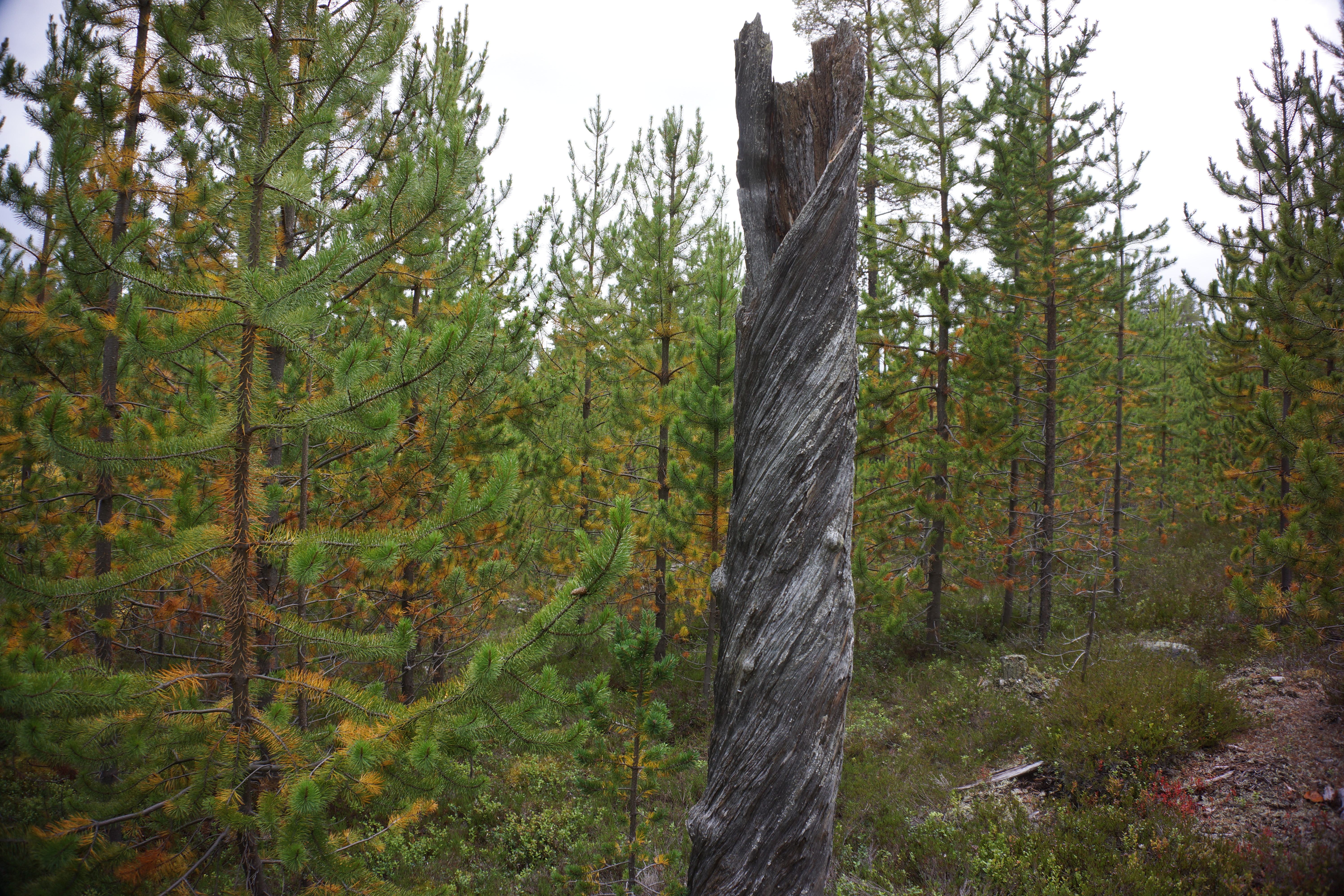 Vi havde indkøbt et nyt jagtpas til et område udelukkende med gammel skov og terrænet vekslede mellem gamle høje fyrretræer og helt ungt fyrre og birkepus. Vi vidste ikke helt hvad vi skulle søge efter, men vi havde dog erfaret at de fleste af de fugle vi havde set, havde siddet inde under de store grantræer med lavthængende grene.