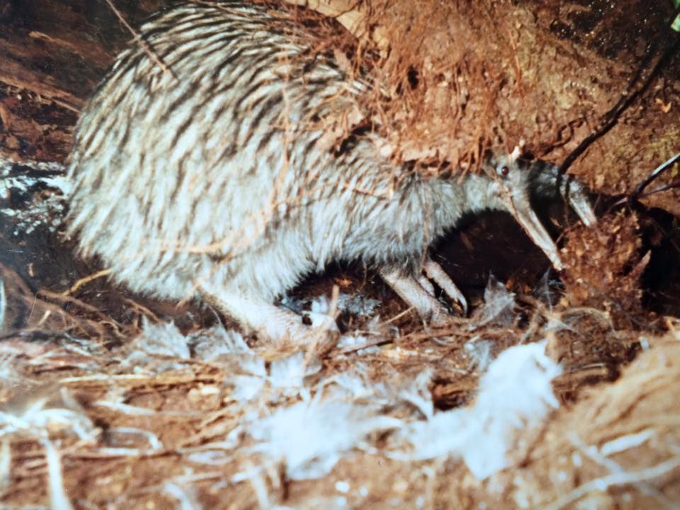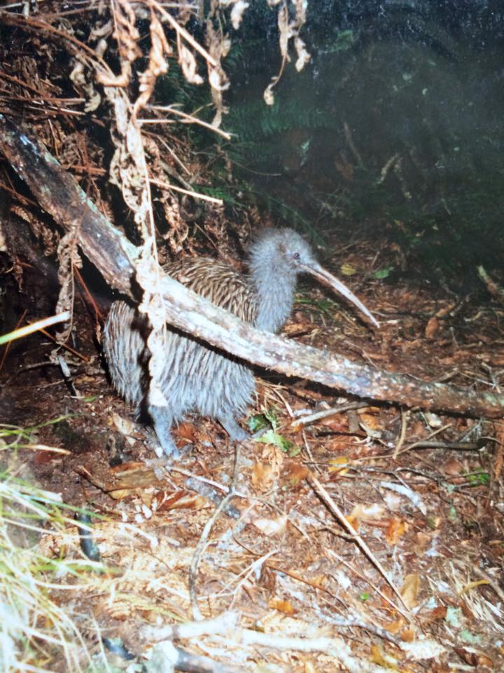 På en af vores heldagsture igennem skoven hørte vi pludseligt noget rode igennem skovbunden, under bregnerne. Riflerne var klar da vi formodede at det enten var en hjort eller én af de vilde katte… Det viste sig at være en stor Kiwi unge som moslede rundt og fangede orme og insekter. Den gik larmende rundt og stak det lange næb ned i jorden. Jeg sneg mig tættere på men ved den første blitz fra engangskameraet strøg den igennem bregnerne og hen til en væltet træstamme! Her viste det sig at der var yderligere to Kiwier som sad og gemte sig i deres hule. Vi fik nogle skønne billeder og var lykkelige over at se disse urgamle fugle som jo er en af de få eneste originale dyr her på New Zealand! Far og jeg er ivrige fuglekiggere og disse skønne store og lidt tykke fugleunger vil altid stå for os begge to som noget helt særligt at få lov til at opleve… Nogle dage senere havde vi afleveret vores engangskameraer i en fotobutik og da vi kom for at afhente billederne var den unge ekspedient helt oppe at køre over billederne! Hun havde aldrig set en vild Kiwi og hun syntes det var helt fantastisk at vi havde set dem på så tæt hold! Selv hendes far var imponeret! Mon hun havde vist billederne til hele byen?!